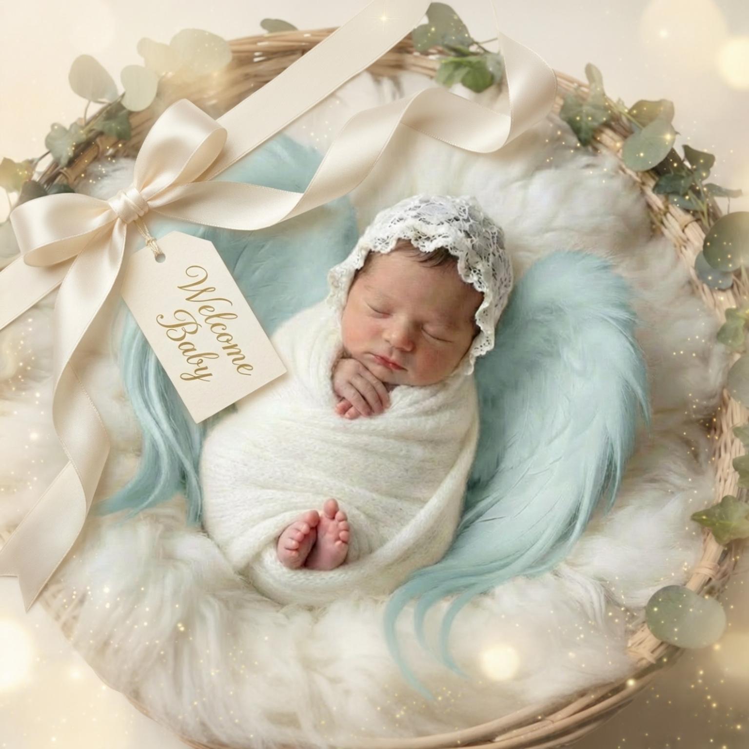 スタジオでもニューボーンフォトは撮りましたが、Angel Born AIのデザインはまた別の魅力がありました。AIならではの多彩な表現で、ふんわり上質なのに新しい雰囲気に仕上がって、見比べてもどちらも宝物になりました。写真を送るだけでここまで整うのも嬉しかったです。