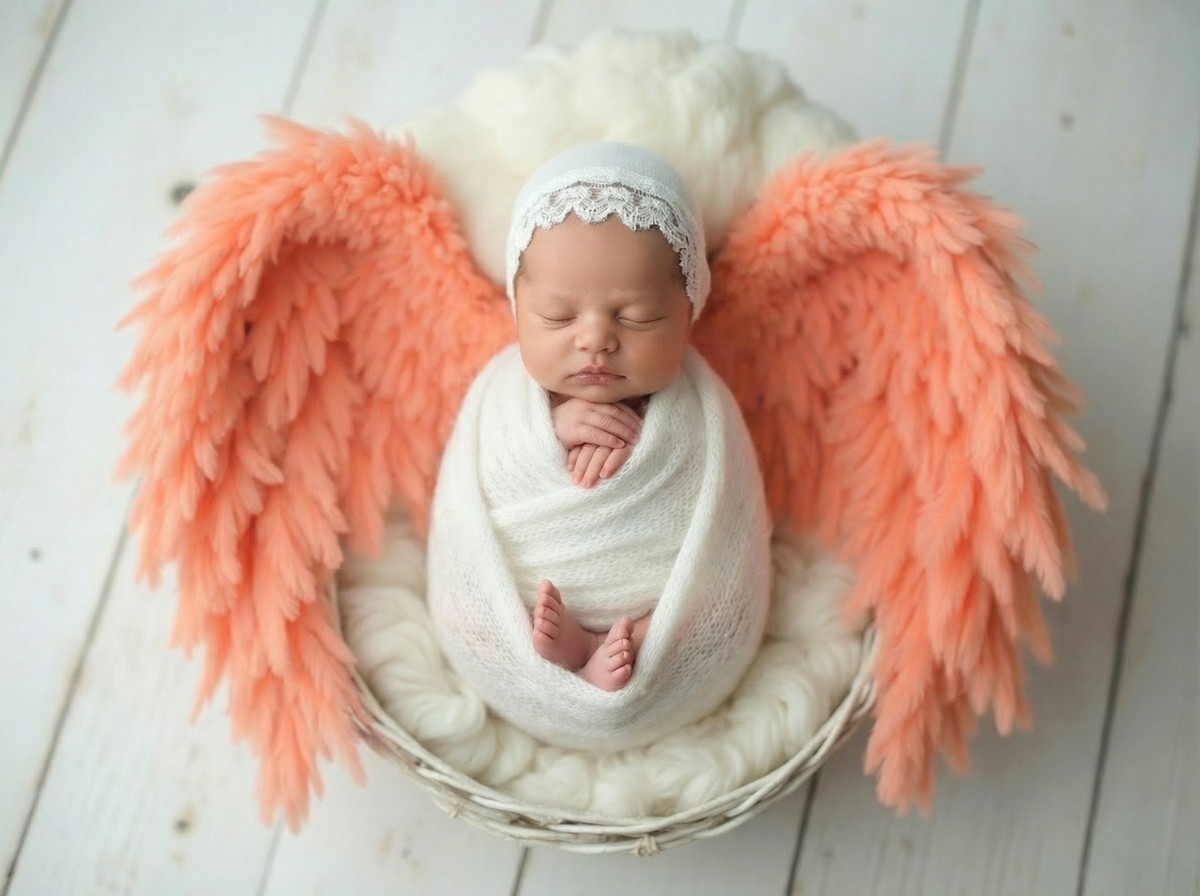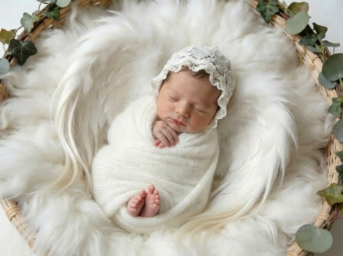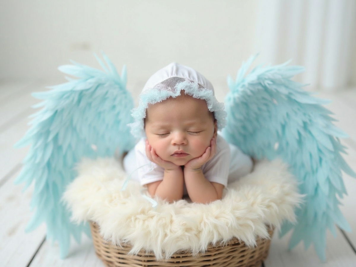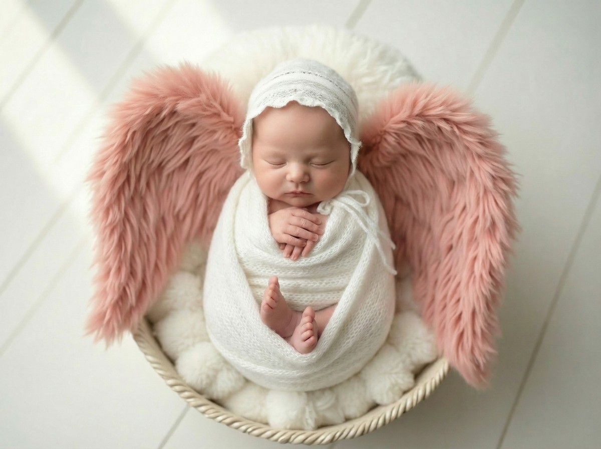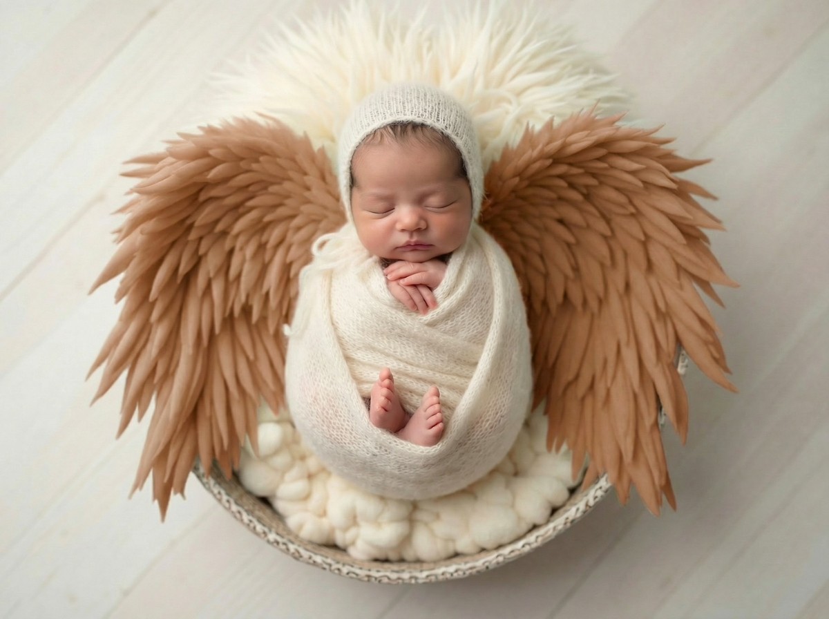 寝顔の写真をもとに、やわらかな質感と透明感をAIで丁寧に整え、天使の世界観に仕上げるプランです。