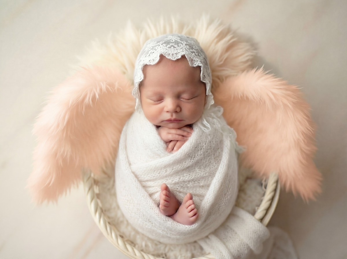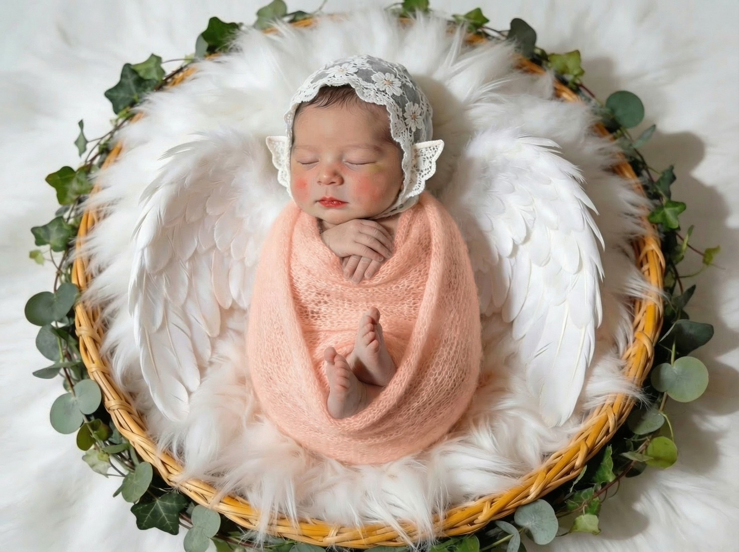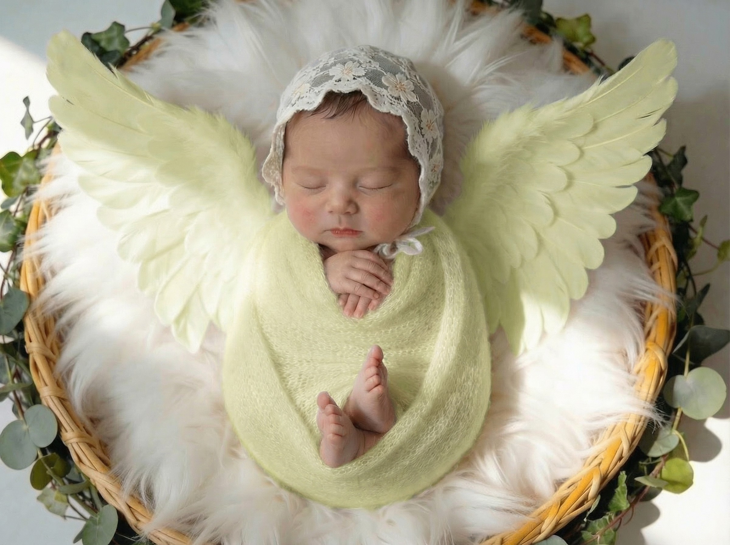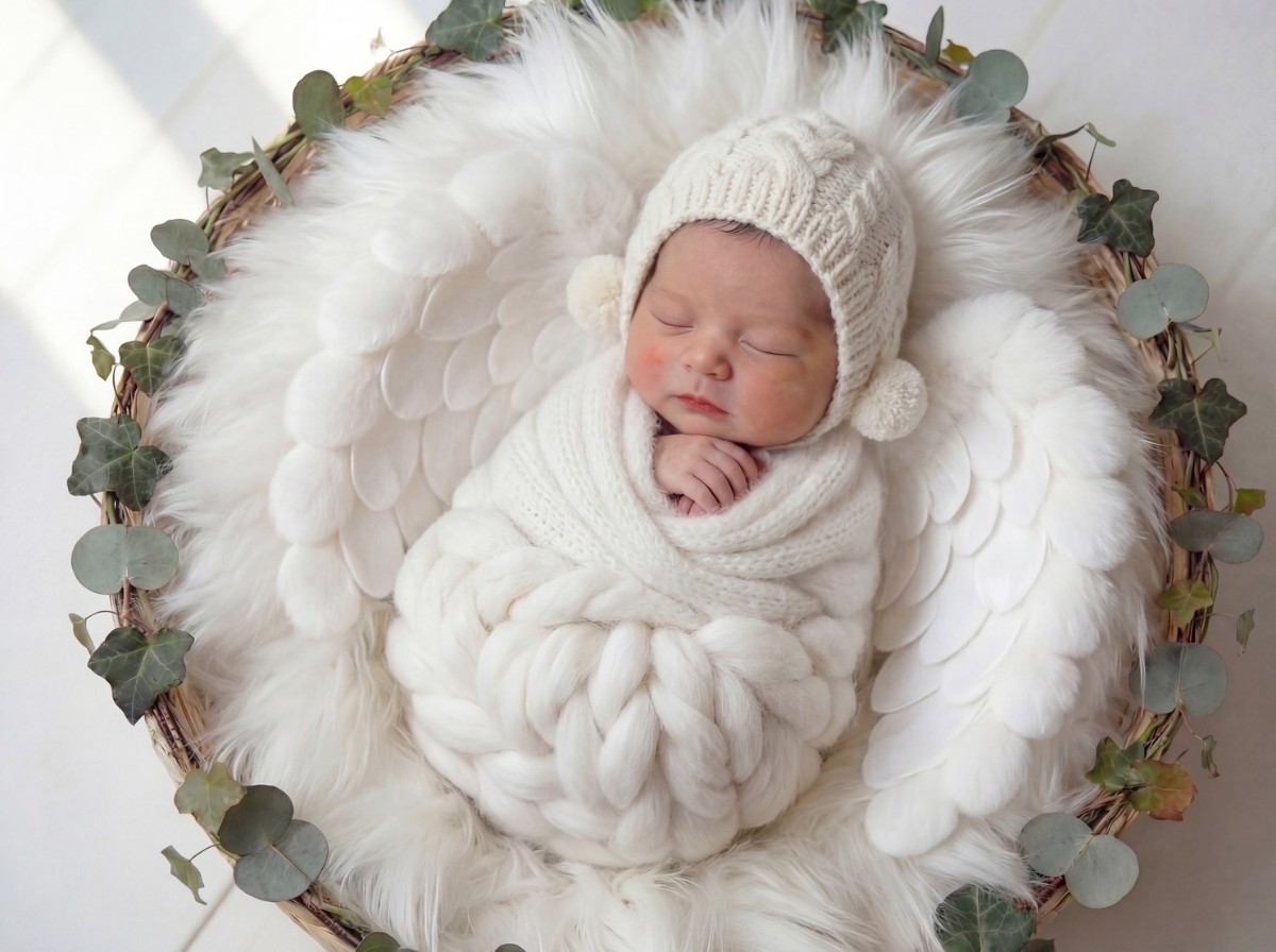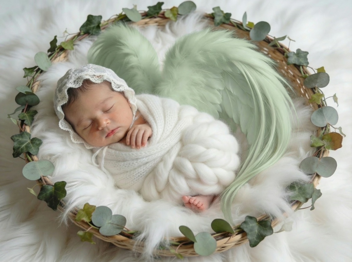 寝顔の写真をもとに、やわらかな質感と透明感をAIで丁寧に整え、天使の世界観に仕上げるプランです。